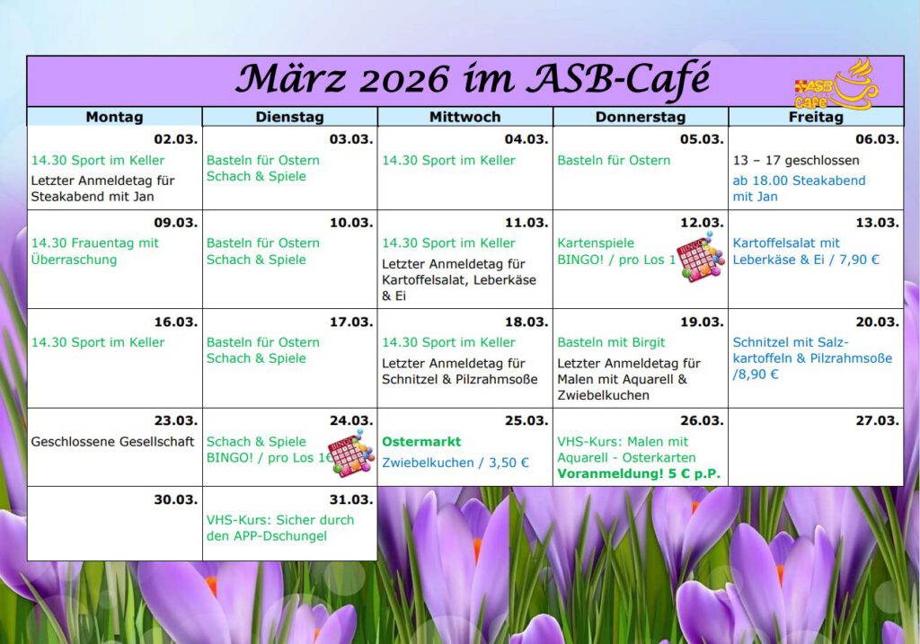 Menschen, die Lust haben, das ASB-Café ehrenamtlich zu unterstützen.