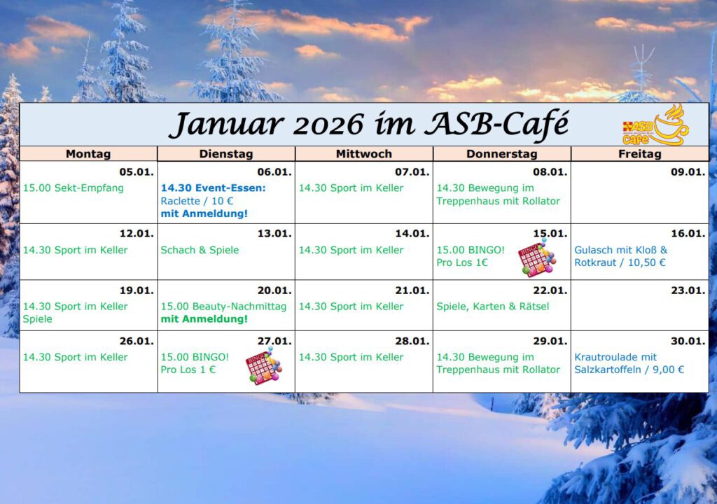 Von Montag bis Donnerstag ist Annett im Café und bietet Unterhaltung und abwechslungsreiche Angebote / Veranstaltungen an.